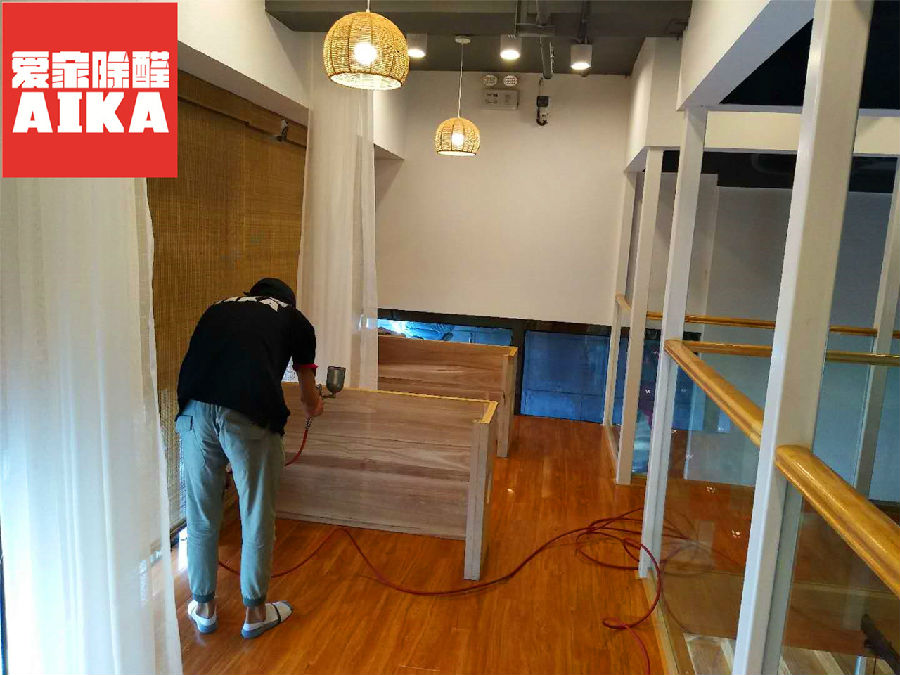 日式的裝修方式采用了大量的木質裝修材料,這些木質材料混了和木頭味兒和甲醛等有害氣體的味道,讓人的感官非常難受,為了照顧到客戶的體驗,燒鳥的老板在開業前期為其整體進行除甲醛。愛家除醛承擔了本次除甲醛任務。