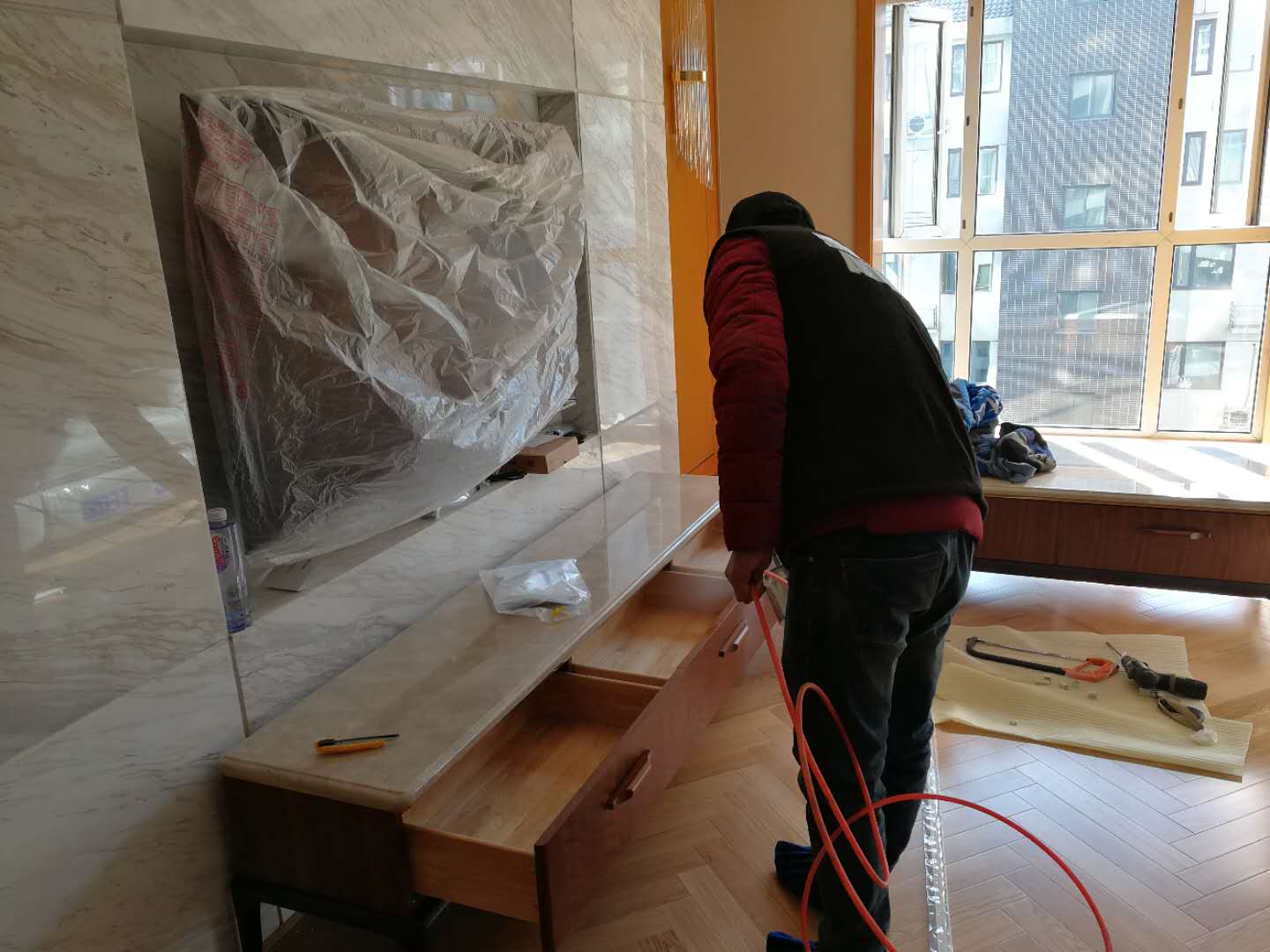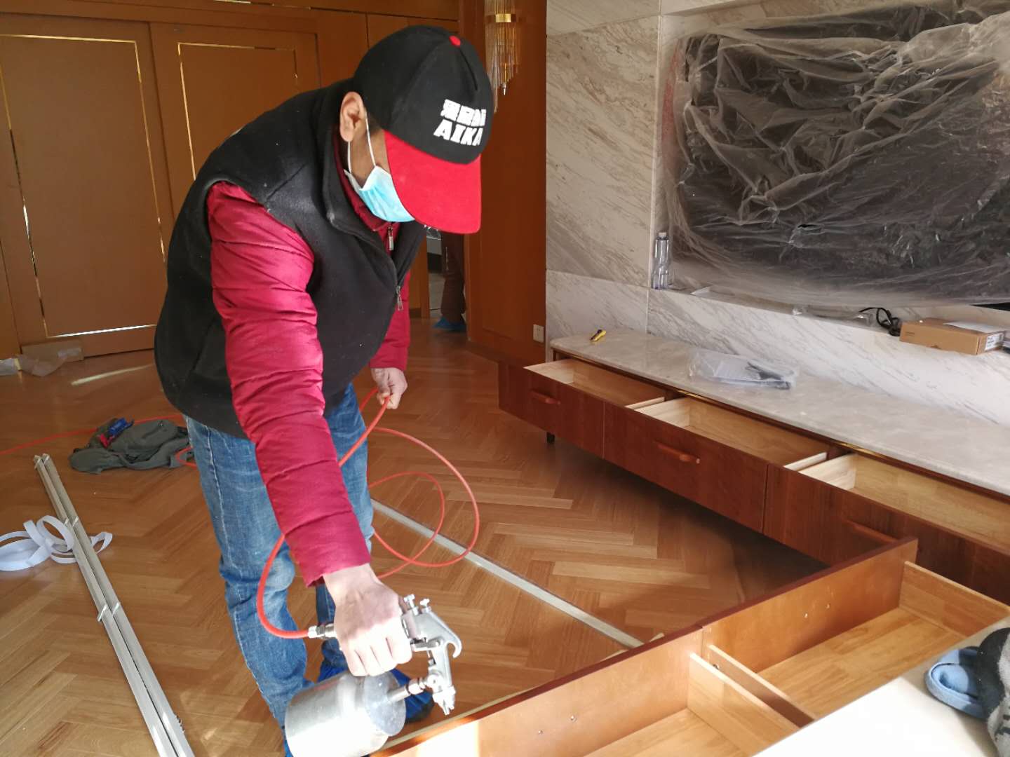 客戶家的主要污染源就是這些柜子,我們針對這些柜子進行了專項治理。