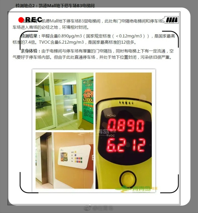 網(wǎng)友實測:凱德停車場甲醛超標10倍 總揮發(fā)有機物爆表